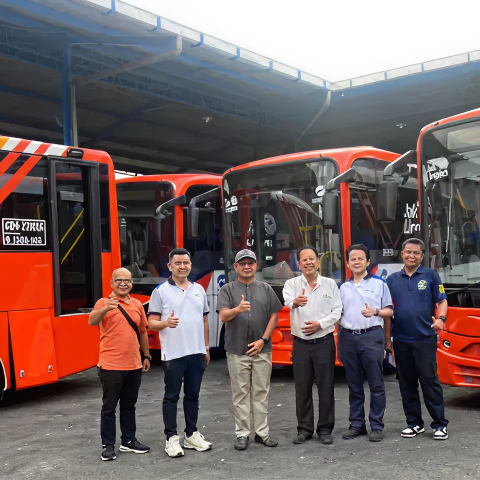 Kami memiliki 12 unit bus yang saat ini dioperatori oleh PT Transportasi Jakarta.